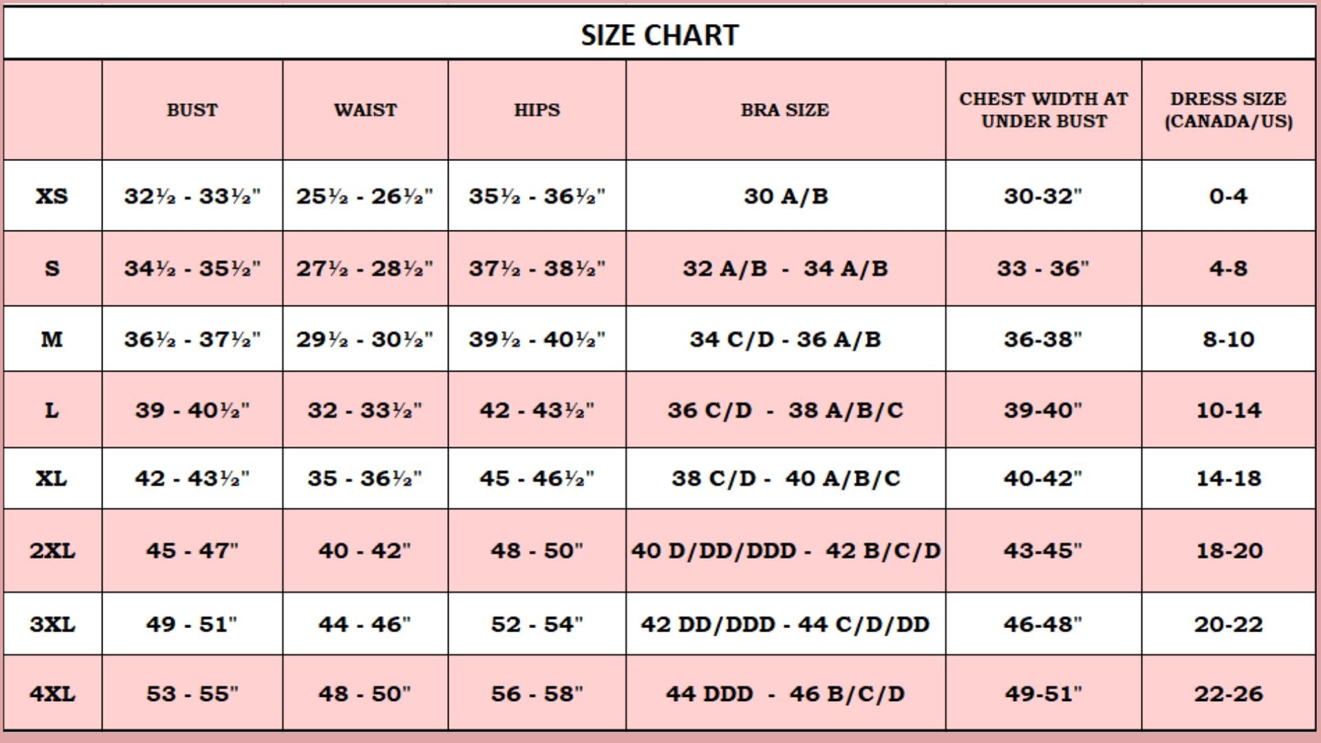INCLUSIVE SIZES XS-4XL